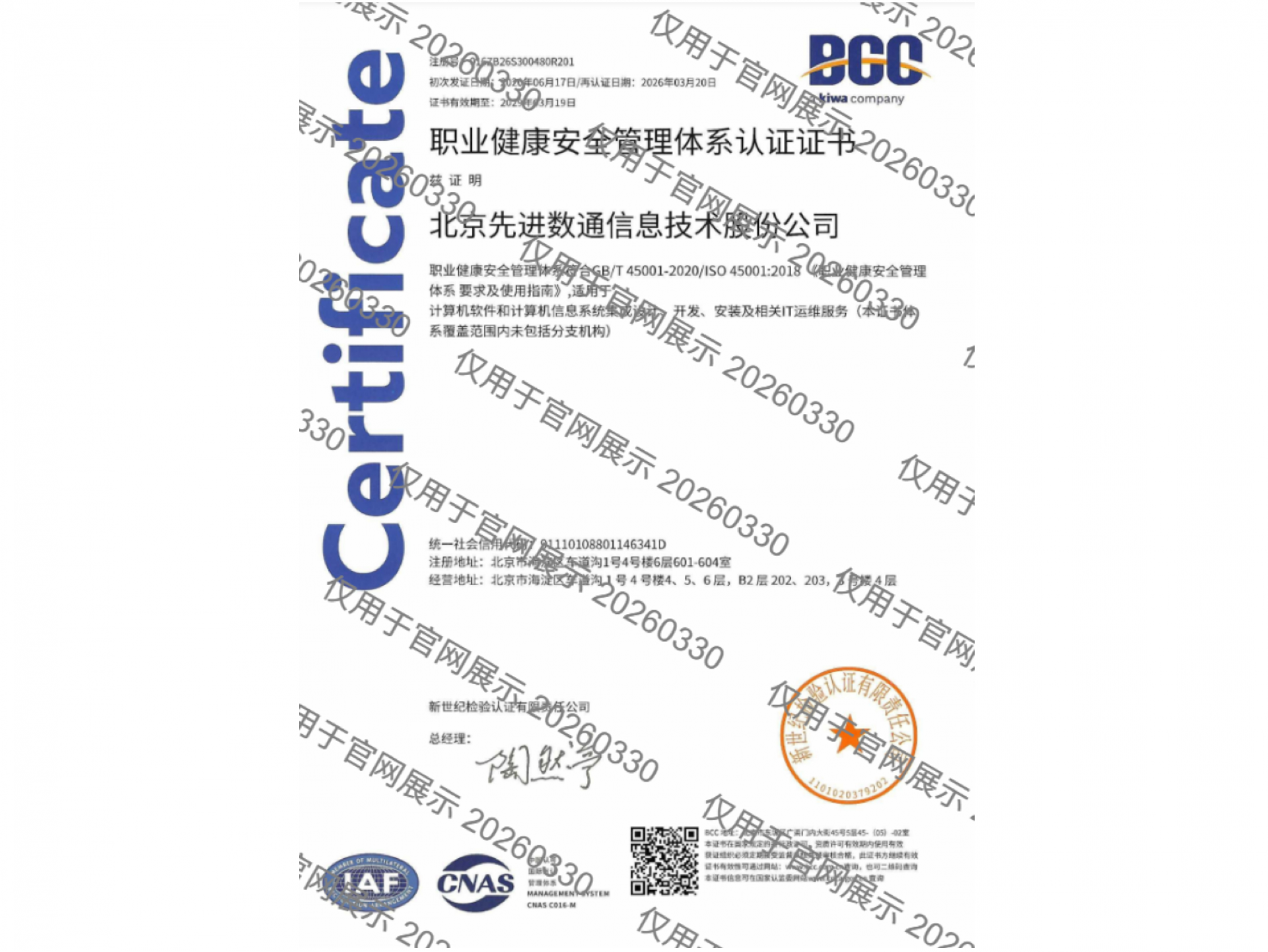 • ISO45001职业健康安全管理体系认证
