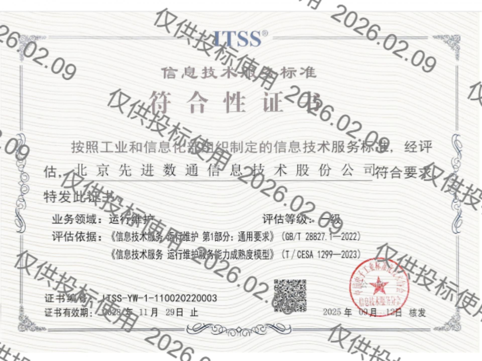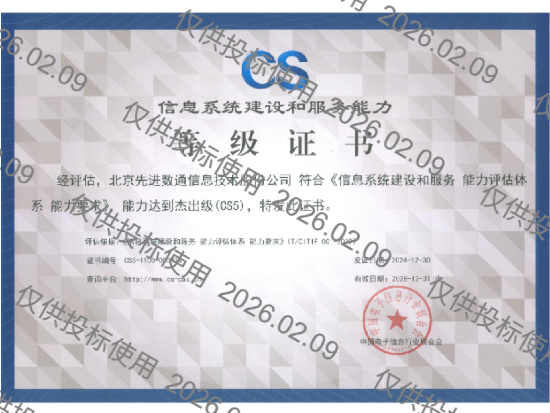 mile米乐集团先后取得CMMIL5、软件能力成熟度五级(SPCA 5)、信息系统建设和服务能力评估体系(CS)5级、ITSS成熟度一级、信息系统安全集成服务资质二级、信息系统安全运维服务资质二级、国产化信息系统集成和服务能力评估四级(LS4)、北京市企业技术中心等资质认证,并取得ISO9001、ISO20000、ISO27001、ISO14001、ISO45001、ISO22301、ISO37001、ISO28001、GBT29490等标准体系认证,具备行业领先的技术开发、工程实施及服务保障能力。