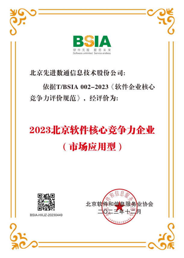 2023年12月12日,北京软件和信息服务业协会第十一届会员代表大会第一次会议暨第十一届理事会第一次会议在北京成功召开。会上发布了《2023北京软件和信息服务业企业综合实力评价报告》和《2023北京软件企业核心竞争力评价报告》,北京mile米乐集团信息技术股份公司(以下简称“mile米乐集团”)喜获2023北京软件核心竞争力企业(市场应用型)荣誉称号。